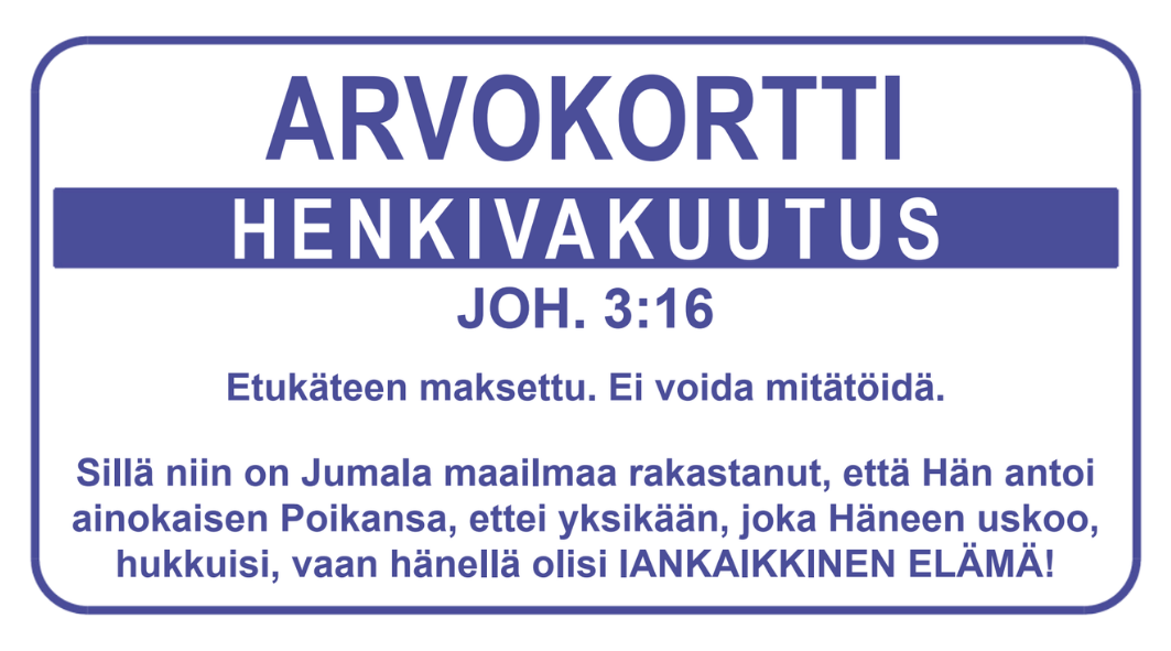 Arvokortti on pieni kortti, jonka avulla voit jakaa evankeliumin sanoman eteenpäin.